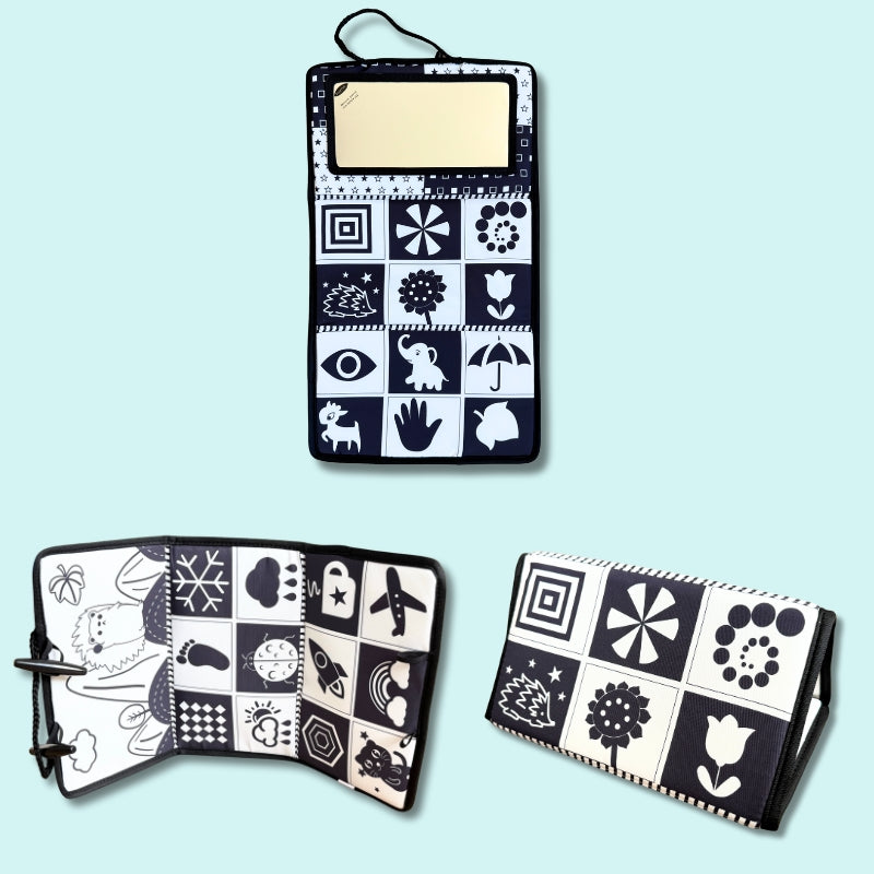 20 contrast cards that stimulates early cognitive development with bold patterns that capture attention and improve focus.